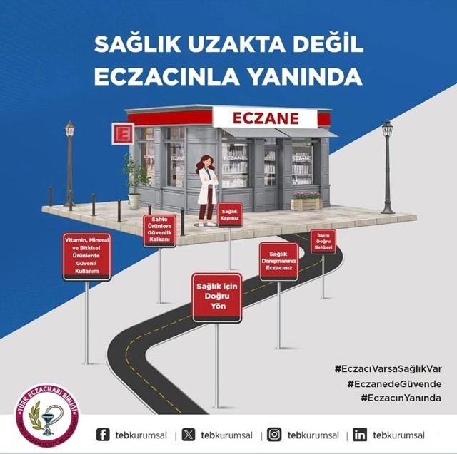 “Eczanelerimizin sadece ilaç temin edilen yerler değil, aynı zamanda danışmanlık hizmeti sunulan birer sağlık merkezi olduğunu her fırsatta vurguluyoruz. Bu anlayışla mesleğimizi daha ileriye taşımak için birlikte mücadele ediyoruz.”