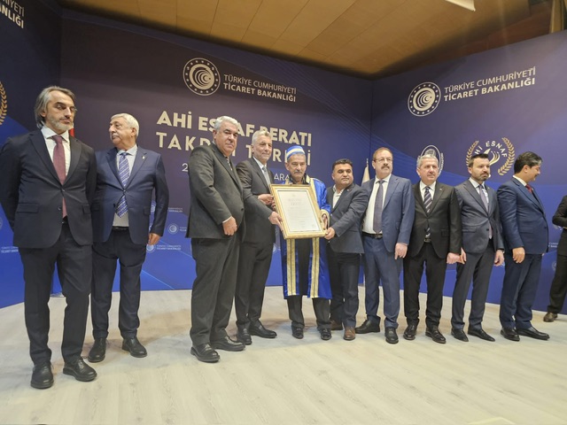 Tören kapsamında, mesleğinde 55 yılı geride bırakan Kahramanmaraşlı kunduracı ustası Hüseyin Denizdolduran, Ahilik kültürünü yaşatma ve meslek ahlakına olan bağlılığından dolayı “Ahi Esnaf Beratı” ile onurlandırıldı. Denizdolduran’a beratını, Ticaret Bakanı Prof. Dr. Ömer Polat takdim etti.