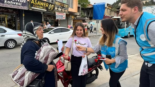 Etkinlik boyunca vatandaşların yoğun ilgisiyle karşılaşan gençlik teşkilatı, çarşı esnafı ve alışveriş yapan annelere çiçek takdim etti. Anneler Günü dolayısıyla gerçekleştirilen bu ziyaret, duygu dolu anlara sahne oldu.