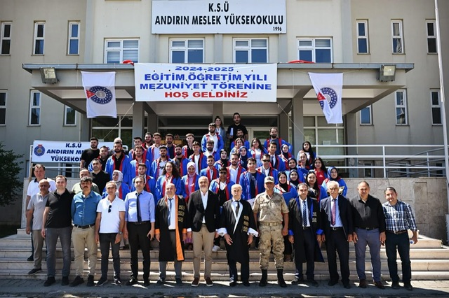 Kahramanmaraş Sütçü İmam Üniversitesi’ne bağlı Andırın Meslek Yüksekokulu’nda mezuniyet töreni düzenlendi. Törende hazır bulunan Andırın Belediye Başkanı Ahmet Sinan Gökşen, gençlerin mezuniyet sevincini paylaşarak başarı temennilerinde bulundu.