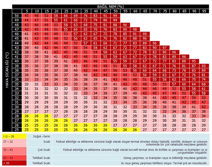 Aşırı sıcaklar çeşitli sağlık problemlerini de beraberinde getirmektedir. Sıcaklık ve nem artışına bağlı olarak vücut ısısı artmakta ve metabolizma bu yeni duruma uyum sağlamaya çalışmaktadır. Normalde terleme ile vücut ısısı dengede tutulmaya çalışılır. Ancak aşırı sıcaklarda sadece terleyerek vücut ısısı dengede tutulamaz. Yaşlılar, bebekler ve kronik hastalığı olanlarda terleme mekanizması ile vücut ısısının dengede tutulması her zaman mümkün olmayabilir. Yine ortamdaki nem oranı yüksekse terleme suretiyle vücut ısısı yeterli düzeyde düşmeyebilir. Ayrıca şişmanlık, herhangi bir hastalığa bağlı yüksek ateş, aşırı sıvı kaybı (dehidratasyon), kalp hastalığı, ruh ve sinir hastalığı, alkol ve uyuşturucu madde kullanımı ile tedavi amaçlıbazı ilaçların (tansiyon düşürücüler, idrar söktürücüler vb.) kullanımı da sıcak havalarda terlemeyi etkileyen diğer faktörlerdendir. Bu gibi durumlarda yükselen vücut ısısı beyin ve diğer hayati organlarda hasara yol açabilir.