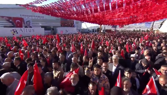 Siz, parti içi köşe kapmaca oyunları oynarken, memleketin her yerinde heykel açılışları yaparken; biz Kahramanmaraş’ı yeniden inşa ediyoruz. Siz, yönettiğiniz yerlerde, belediyelerde deprem bütçelerini düşürüp insanımızı kaderine terk ederken; biz Adıyaman’ı, Malatya’yı, Hatay’ı, Osmaniye’yi Diyarbakır’ı yeniden inşa ediyoruz. Siz, Meclis koridorlarında demokrasinin önüne barikat kurarken, her türlü terör seviciyle iş tutarken; biz Elazığlı, Gaziantepli, Kilisli, Urfalı kardeşlerimize yeni yuvalar kuruyoruz. Kardeşlerim, gönlünüz ferah olsun.