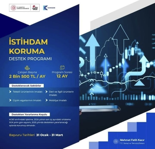 Destek programından yararlanmak isteyen işletmelerin, 2024 yılının son üç ayına ait aylık ortalama çalışan SGK prim gün sayısını 1 Ocak 2025 – 31 Aralık 2025 tarihleri arasında koruması gerekecek.
