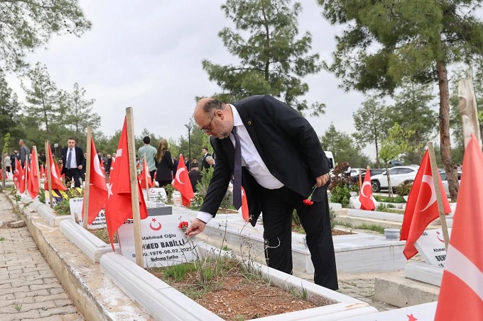Ziyaret sırasında, Kur’an-ı Kerim tilaveti okunarak depremde hayatını kaybedenler için dualar edildi. Başkan Akpınar ve protokol üyeleri, şehitlerimizin kabirlerine karanfil bırakarak, ruhlarının şad olması için dua etti. Ayrıca, deprem şehitlerinin ailelerine sabır ve metanet dileyen Başkan Akpınar, yaşanan acıların hafızalarda hep taze kalacağını ancak birlikte ve güçlü bir şekilde bu zor günlerin üstesinden gelmeye devam edeceklerini ifade etti.