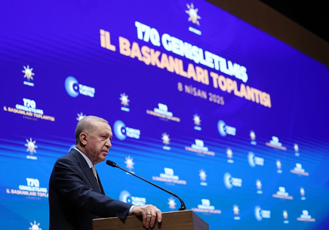 Cumhurbaşkanı Erdoğan, toplantıda yaptığı konuşmada hem iç politikaya hem de uluslararası