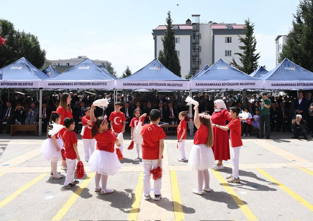Kahramanmaraş, 23 Nisan Ulusal Egemenlik ve Çocuk Bayramı’nı büyük bir coşku ve gururla kutladı. MADO Kadriye Kanbur İlkokulunda düzenlenen kutlama programı, şehir protokolünün ve vatandaşların yoğun katılımıyla gerçekleştirildi. Programa Büyükşehir Belediye Başkanı Fırat Görgel’in yanı sıra Vali Mükerrem Ünlüer, 2. Zırhlı Tugay Komutanı Tuğgeneral Tolga Genç, KSÜ Rektörü Prof. Dr. Alptekin Yasım, KİÜ Rektörü Prof. Dr. İsmail Bakan, Onikişubat Kaymakamı Salih Çiğdem, Dulkadiroğlu Kaymakamı Hicabi Aytemür, İl Jandarma Komutanı Tuğgeneral Ali Gemalmaz, İl Emniyet Müdürü Nurettin Gökduman, İl Milli Eğitim Müdürü Erhan Baydur, öğretmenler, öğrenciler ve aileler katıldı. Saygı duruşunda bulunulması ve İstiklal Marşı’nın okunmasıyla başlayan program, öğrencilerin hazırladığı renkli gösterilerle devam etti. Minik öğrenciler tarafından sergilenen şiir dinletileri, halk oyunları gösterileri ve çeşitli yarışmalar, katılımcılardan büyük beğeni topladı.