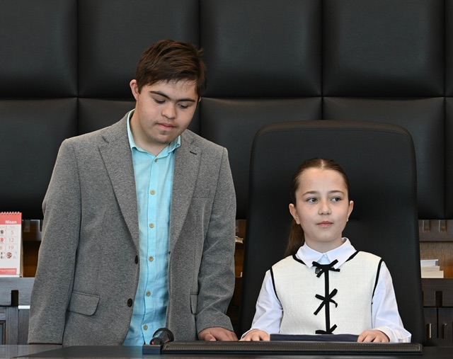 23 Nisan Ulusal Egemenlik ve Çocuk Bayramı dolayısıyla Kahramanmaraş Büyükşehir Belediye Başkanlığı’nda anlamlı bir devir teslim töreni gerçekleştirildi. Büyükşehir Belediye Başkanı Fırat Görgel, bu özel günde makam koltuğunu Şehit Fatih Gök İlkokulu 4. sınıf öğrencisi Erva Zehra Boyraz’adevretti. Temsili devir teslim töreni, bayramın ruhuna yakışır şekilde samimi ve renkli görüntülere sahne oldu. Minik başkan Erva Zehra Boyraz’a teslim töreninde; kuzeni özel gereksinimli şampiyon yüzücü Sertaç Tahsin Boyraz, okul müdürü Duran Gül ve öğretmenleri de eşlik etti. Tören boyunca heyecanı gözlerinden okunan Erva Zehra Boyraz, başkanlık makamında oturarak hem duygu ve düşüncelerini paylaştı hem de çocukların beklentilerine yönelik mesajlar verdi. Programda konuşan Büyükşehir Belediye Başkanı Fırat Görgel, 23 Nisan’ın sadece bir bayram değil, aynı zamanda çocuklara verilen değerin ve duyulan güvenin en önemli göstergelerinden biri olduğunu vurguladı. Görgel, geleceğin teminatı olan çocukların daha güçlü, bilinçli ve donanımlı bireyler olarak yetişmesi için tüm imkânların seferber edildiğini ifade etti. Temsili başkan Erva Zehra Boyraz ise böyle anlamlı bir günde Büyükşehir Belediye Başkanı olmanın gururunu yaşadığını belirterek, kendisine bu fırsatı sunan Başkan Görgel’e teşekkür etti.
