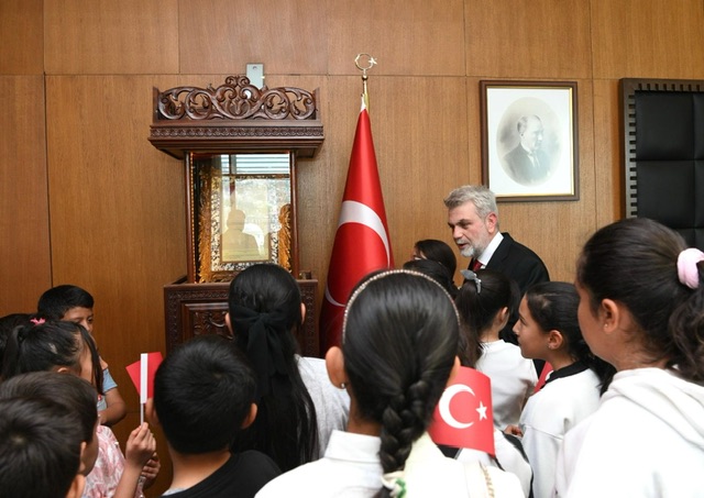 23 Nisan Ulusal Egemenlik ve Çocuk Bayramı dolayısıyla Kahramanmaraş Büyükşehir Belediye Başkanlığı’nda anlamlı bir devir teslim töreni gerçekleştirildi. Büyükşehir Belediye Başkanı Fırat Görgel, makam koltuğunu Çakmakçı Sait Ortaokulu 5. sınıf öğrencisi Mina Nur Dağ’a devretti. Temsili devir teslim töreninde Mina Nur Dağ’a okul müdürü Ramazan Sevilir ve Türkçe Öğretmeni Ayşe Kır da eşlik etti. Büyük bir heyecan ve mutluluk yaşayan Mina Nur Dağ, devir teslim sonrası görevine hızlı bir başlangıç yaptı. Minik başkan Mina Nur, Büyükşehir Belediyesi Fen İşleri Dairesi Başkanı Murat Oğuz Alkış’i telefonla arayarak, şehir genelindeki okullarda spor alanlarının artırılması yönünde talimat verdi.