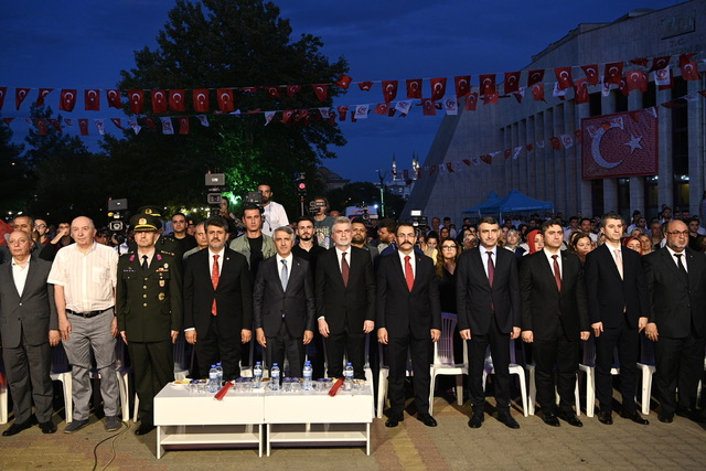 Vali Mükerrem Ünlüer, “Milli birlik ve beraberliğin perçinlendiği, Türk halkının destanlar yazdığı ve dünya devletlerine ders niteliğinde olan 15 Temmuz Demokrasi ve Milli Birlik Günü’nün 8. yıl dönümü. Ülkenin en önemli kurumlarına sızmış hainlerin saltanat sevdaları uğruna nasıl ellerini kana buladıklarını o gün hepimiz gördük. Devleti ve milleti korumak için kendilerine emanet edilen silahları,uçakları, tankları vatandaşlarına doğrultan hainler kendi rahatları ve hırsları için aziz milletimizin kanını döktüler. Cumhurbaşkanımız Sayın Recep Tayyip Erdoğan’ın çağrısı sonrasında ellerine bayrakları alarak meydanlara ve havalimanlarına gelen kahramanlarımız göğsünü vatanı için siper etmiştir. Her ne olursa olsun vatanından, bayrağından ve onurundan ödün vermeyeceğini gösteren vatandaşlarımız, her zaman devletinin yanında olmuştur” diye konuştu.