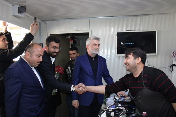 Ziyarette vatandaşların Partiye ve Başkan Adaylarına duyduğu teveccühten memnun olduğunu dile getiren Ak Parti İl Başkanı Cüneyt Doğan; “Bugün büyükşehir belediye başkan adayımız, ilçe başkanımız ve teşkilatlarımızla birlikte yine sahalardayız her gün olduğu gibi. Allah’ın izniyle 31 Mart seçimlerinde en büyük oy oranıyla inşallah partimizi en yüksek seviyelere taşıyacağız. Gördüğünüz gibi şehrimiz şantiye alanına çevrilmiş durumda. Kahramanmaraş yeniden ayağa kalkacak. Biliyoruz, Biliyorsunuz AK Parti, Esen ve hizmet belediyeciliği yapar. Yaparsa AK Parti yapar diyoruz yine. Hazırız, kararlıyız. İnşallah el birliğiyle şehrimizi ayağa kaldıracağız. Bütün belediye başkan adaylarımız şu anda hepsi sahadalar. Çok güzel projelerle inşallah şehrimizi şekilde donatıp 31 Mart’ta sevinçle, mutlulukla inşallah güzel günlere hep beraber adım atacağız” dedi.
