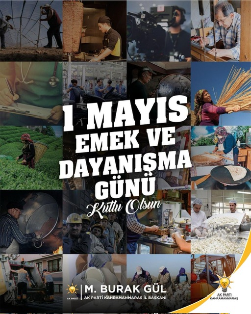 AK Parti Kahramanmaraş İl Başkanı M. Burak Gül, 1 Mayıs Emek ve Dayanışma Günü dolayısıyla yayımladığı mesajda, emekçilerin Türkiye’nin kalkınmasındaki en büyük güç olduğunu belirtti. Gül, emeğin sadece ekonomik değil, aynı zamanda ahlaki ve toplumsal bir değer taşıdığını vurguladı.