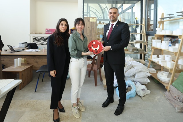 Başkan Toptaş, kursiyerlerle sohbet ederek süreç hakkında bilgi aldı ve ortaya çıkan eserleri yakından inceledi.