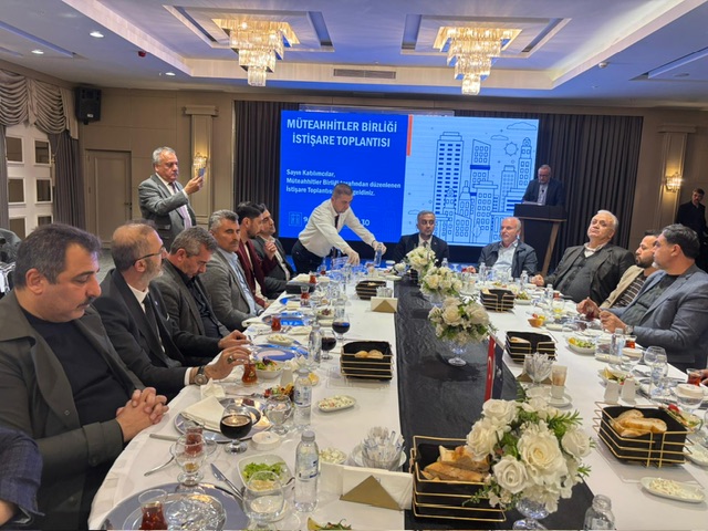 Müteahhitler Birliği üyeleriyle karşılıklı görüş alışverişinde bulunulan toplantıda, sahada yaşanan sorunlar, çözüm önerileri ve yeni projeler ele alındı. Başkan Toptaş, sektör temsilcilerinin görüş ve önerilerinin yol haritası açısından önemli olduğunu belirterek, ortak akıl anlayışıyla hareket ettiklerini söyledi.
