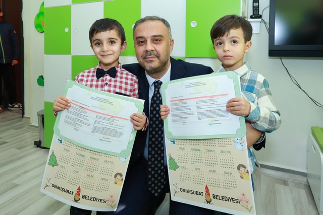 Şehit Hakan Akdere Gündüz Bakımevi’nde eğitim gören minikler, düzenlenen karne dağıtım programına katılan Onikişubat Belediye Başkanı Hanifi Toptaş’a doğum günü sürprizi yaptı.