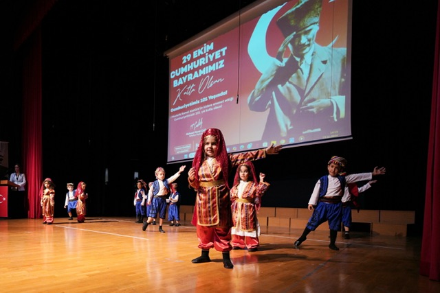 29 Ekim Cumhuriyet Bayramı etkinlikleri Beylikdüzü’nde başladı. İlçede bulunan Gündüz Çocuk Bakımevlerinde eğitim gören öğrencilerin hazırladığı, Atatürk ve Cumhuriyet konulu şiir ve dans gösterileri renkli görüntülere sahne oldu. Etkinliğe katılan Beylikdüzü Belediye Başkanı Mehmet Murat Çalık, çocuklarla birlikte marşlar söyleyerek bayram coşkusunu paylaştı. Çalık, sahnede yaptığı konuşmada Cumhuriyet’in çocuklara emanet olduğunu vurgulayarak, genç nesillerin geleceği şekillendireceğine olan inancını dile getirdi. Başkan Çalık, “29 Ekim Cumhuriyet Bayramı’nın milletimiz için her geçen gün daha iyi anlaşılan bir öneme sahip olduğunu görüyoruz. Çocuklarımızın bilinçli yurttaşlar olarak yetişmesi, Cumhuriyet’in geleceği için son derece önemli. Bu yüzden çocuklarımız için çalışmak en büyük önceliğimiz” dedi.