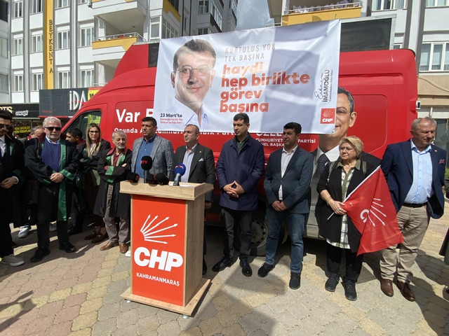 Cumhuriyet Halk Partisi (CHP) Kahramanmaraş İl Başkanı Ünal Ateş, beraberindeki ilçe başkanları ve teşkilat üyeleri ile birlikte parti binası önünde bir basın açıklaması yaptı. Açıklamasında, CHP’ye yönelik siyasi saldırılar düzenlendiğini belirten Ateş, sabah saatlerinde Ekrem İmamoğlu ve birçok ismin gözaltına alınmasına sert tepki gösterdi.
