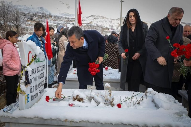 Özel, 6 Şubat 2023’te meydana gelen depremlerde hayatını kaybedenlerin defnedildiği Kurugeçit Mahallesi’ndeki mezarlığı ziyaret ederek, ölenlerin yakınlarına başsağlığı diledi. Kabirlere karanfil bırakan Özel, dua etti.