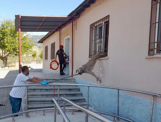 Dulkadiroğlu Yeşiltepe Mahallesinde pencere demir korkuluklarına köpek sıkıştığını fark eden vatandaşlar durumu itfaiye ekiplerine bildirdi. Yapılan ihbar üzerine bölgeye gelen itfaiye ekipleri pencere demirine sıkışan köpeği bulunduğu yerden çıkarak, Kahramanmaraş Büyükşehir Belediyesi barınak görevlilerine teslim etti.