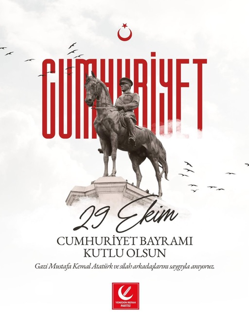 Yeniden Refah Partisi Hatay İl Sorumlusu Dr. Fatih Mehmet Ceyhan, 29 Ekim Cumhuriyet Bayramı’nın 102. yıl dönümü dolayısıyla bir kutlama mesajı yayımladı.