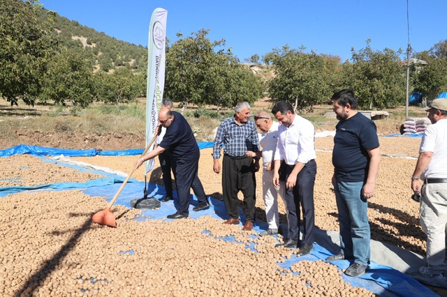 Başkan Akpınar, Bertiz Başdervişli mahallesinde gerçekleştirilen ceviz hasadı sonrasında çiftçi Mehmet Kurt’tan ilk ceviz alımını gerçekleştirdiklerini ifade etti.