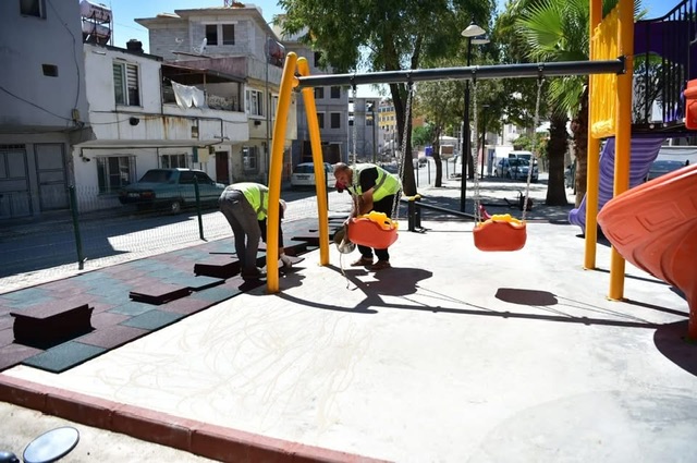 Dulkadiroğlu Belediyesi, çocukların güvenli ve konforlu bir şekilde vakit geçirebileceği oyun alanları oluşturmak amacıyla çalışmalarına devam ediyor. Park ve Bahçeler Müdürlüğü ekipleri, Sakarya Mahallesi’nde bulunan çocuk oyun grubunun alt zemin döşeme çalışmalarını titizlikle yürütüyor.