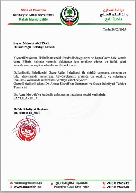 Gazze Belediyesi, Dulkadiroğlu Belediyesi’ni kardeş belediye olmaya, iş birliği yapmaya ve bilgi alışverişinde bulunmaya davet etmişti. Bu önemli davet çerçevesinde, Dulkadiroğlu Belediye Başkanı Mehmet Akpınar, Gazze halkının yanında olmaya devam edeceklerini ve her koşulda dayanışmayı sürdüreceklerini vurguladı.