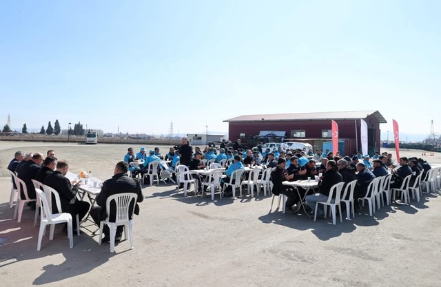 Dulkadiroğlu Belediye Başkanı Mehmet Akpınar, Belediye Başkan Yardımcısı Latif Öztürk, Hizmet-İş Sendikası yetkilileri, birim müdürleri ve meclis üyelerinin katılımıyla Çevre Koruma ve Kontrol Müdürlüğü şantiyesinde belediye personeline yönelik yemek organizasyonu düzenlendi.