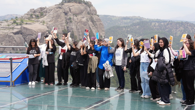19 Nisan’da kapılarını açan ve o tarihten bu yana edebiyatseverlerin yoğun ilgisiyle devam eden 5. Uluslararası Şiir ve Edebiyat Günleri, unutulmaz bir etkinliğe daha imza attı. Şehrin en önemli doğal ve turistik mekânlarından biri olan Ali Kayası Cam Teras, bu kez doğanın büyüleyici atmosferiyle edebiyatı buluşturan açık hava okuma şenliğine ev sahipliği yaptı. Etkinlik kapsamında farklı yaş gruplarından gençler, Ali Kayası’nın kartpostalları aratmayan eşsiz manzarasına karşı kitaplarını ellerine alarak sessiz bir edebiyat yolculuğuna çıktı. Doğayla iç içe gerçekleştirilen bu anlamlı etkinlikte, şiir ve edebiyat dolu saatler boyunca katılımcılar sadece sayfalar arasında değil, aynı zamanda gökyüzü ve vadi manzarasıyla da büyülendi. Etkinliğe katılan gençler, bu tür organizasyonların hem kitap okumaya teşvik ettiğini hem de sosyal anlamda güçlü bağlar kurulmasına olanak tanıdığını dile getirdi. Ali Kayası gibi özel bir mekânda kitap okumanın tarif edilemez bir mutluluk olduğunu belirten katılımcılar, yaşadıkları deneyimi “unutulmaz” olarak tanımladı.