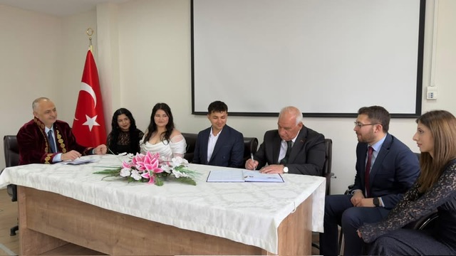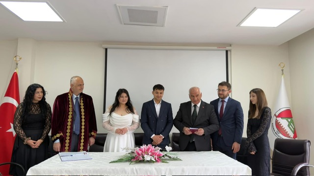 Program çerçevesinde Belediye Başkanı Ahmet Sinan Gökşen’in kıydığı nikâh törenine de katılan heyet, genç çiftin mutluluğuna ortak oldu. Başkan Cüce, böylesine anlamlı bir günde çiftin yanında olmaktan memnuniyet duyduklarını ifade etti.