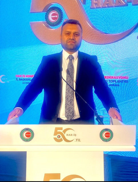 HAK-İŞ’in 50 yıl önce kurulduğunu belirterek Hak-İş /Hizmet-İş Sendikası Kahramanmaraş Şube Başkanı Mehmet Akif Dağ, Emeğin evrensel gücü olduğunu söyledi.