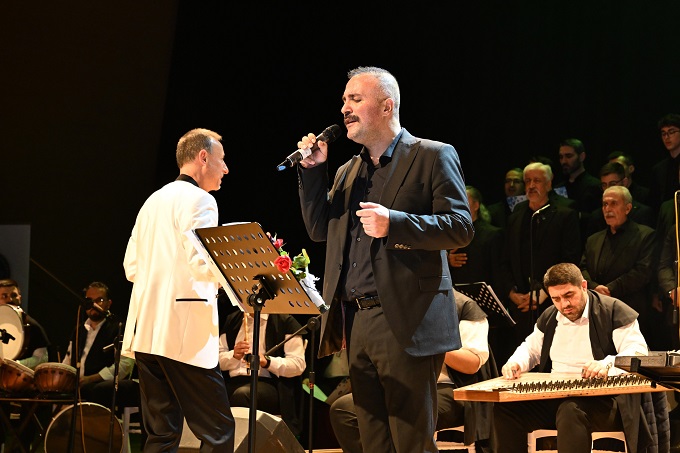 seçkin eserleri seslendirilirken, semazenler Mevlâna’nın “aşk ile dön” çağrısını sahneye