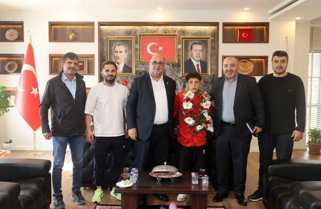 Romanya’da düzenlenen U17 Güreş Balkan Şampiyonası’nda 45 kilogram kategorisinde İsrailli rakibini mağlup ederek büyük bir başarıya imza atan Kahramanmaraşlı milli sporcu İbrahim Bera Kıvrak, Dulkadiroğlu Belediye Başkanı Mehmet Akpınar’ı ziyaret etti.