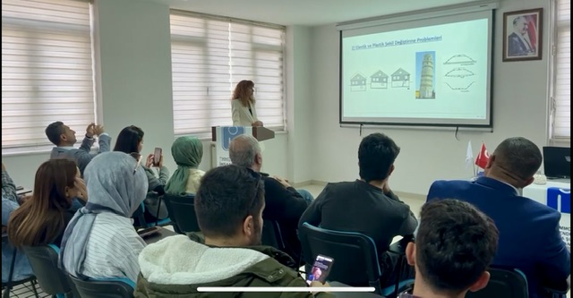 Kahramanmaraş Sütçü İmam Üniversitesi İnşaat Mühendisliği Bölümü Geoteknik Anabilim Dalı’ndan Dr. Fatma Tuğçe Çınar Özkan, “Geoteknik Mühendisliği, Zemin Sınıflandırması ve Zemin Özellikleri Laboratuvar Deneyleri” konulu bir seminer verdi. Oda Başkanı Gündeşli, Dr. Özkan’ın bu alandaki bilgi ve tecrübelerinin yerel mühendislerin gelişimine katkı sağladığını belirterek, eğitim ve seminer iş birliklerinin devam edeceğini söyledi.