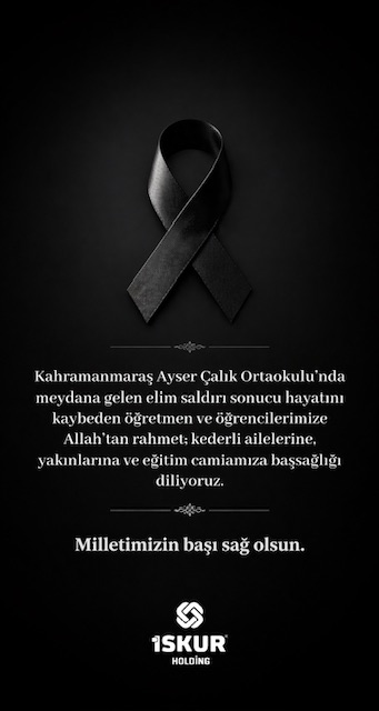 İSKUR Holding, Kahramanmaraş’ta Ayşer Çalık Ortaokulu’nda meydana gelen silahlı saldırıya ilişkin bir başsağlığı mesajı yayımladı. Yapılan açıklamada, yaşanan olayın büyük bir üzüntüyle karşılandığı ifade edildi.