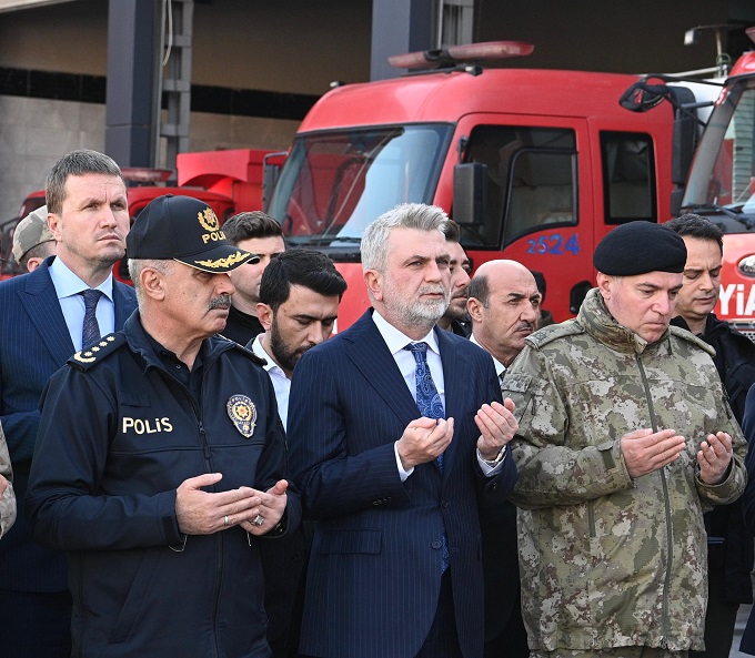 İl Emniyet Müdürü Nurettin Gökduman, itfaiye erleri, Doğan ailesi ve yakınlarının katıldığı