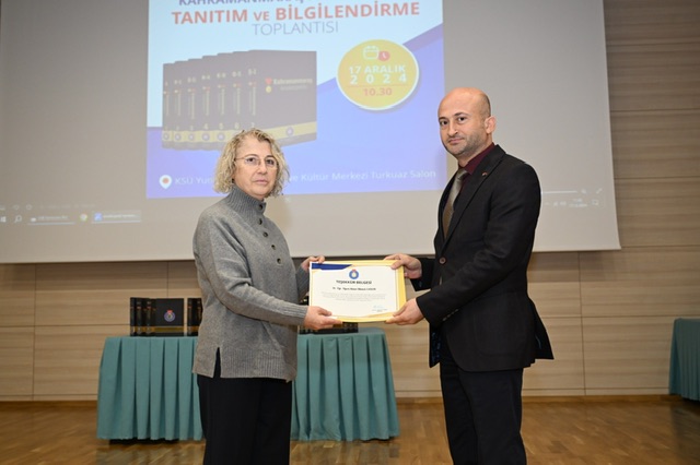 Programın devamında, ansiklopediye katkı sağlayan yazarlara, düzenleme ve bilim kurulu üyelerine teşekkür belgeleri takdim edildi. KSÜ Rektörü Prof. Dr. Alptekin Yasım, Rektör Yardımcıları ve diğer protokol üyeleri, ansiklopedinin oluşum sürecinde yer alan öğretim elemanlarına belgelerini sundu.