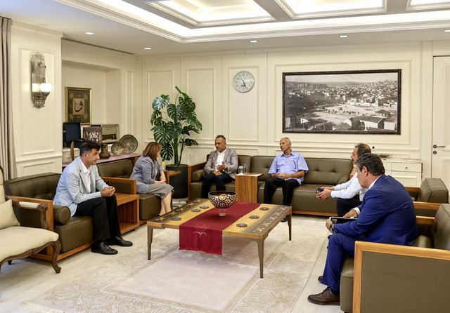 Kahramanmaraş Ziraat Odaları İl Koordinasyon Kurulu Başkanı Kahramanmaraş Ziraat Odası Başkanı Mehmet Çetinkaya, beraberinde Pazarcık Ziraat Odası Başkanı Hacı Ali Çiftepala, Türkoğlu Ziraat Odası Başkanı Mustafa Akkaya ve Çağlayancerit Ziraat Odası Başkanı Ömer Çedene ile birlikte Gaziantep Büyükşehir Belediye Başkanı Fatma Şahin’i ziyaret etti.