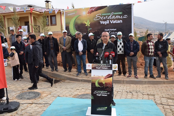 Kahramanmaraş Valisi Mükerrem Ünlüer, “Yeşil Vatan” mottosuyla 81 ilde eş zamanlı olarak düzenlenen Milli Ağaçlandırma Günü etkinliği kapsamında Göksun ilçesi Bozhüyük Mahallesi’nde gerçekleştirilen fidan dikim programına katıldı.