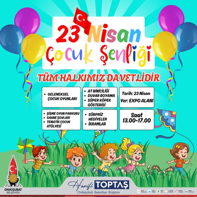Hanifi Toptaş öncülündeki Onikişubat Belediyesi, EXPO 2023 Sergi Alanı’nda düzenleyeceği 23 Nisan Çocuk Şenliği ile bayramı büyük bir coşkuyla kutlamaya hazırlanıyor.