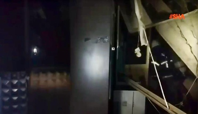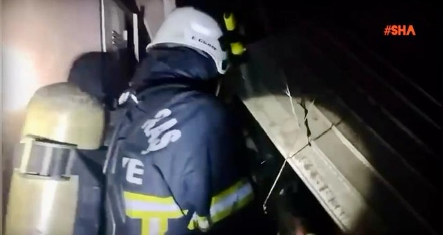 Kahramanmaraş (SHA)- Kahramanmaraş’ta ağır hasarlı bir binada çıkan yangın paniğe neden oldu.