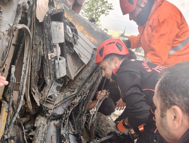 İhbar üzerine olay yerine itfaiye ve sağlık ekipleri sevk edildi. İtfaiye ekiplerinin çalışması sonucu enkaz altından çıkarılan yaralı operatör, sağlık ekiplerine teslim edildi. İlk müdahalesi olay yerinde yapılan Y.K.’nin sağlık durumunun iyi olduğu öğrenildi.