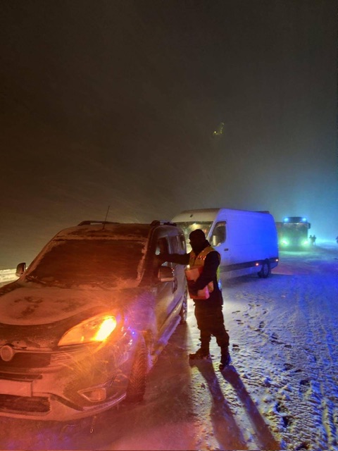 Zorlu hava şartları altında yolda mahsur kalan vatandaşlara, ekipler tarafından yiyecek ve içecek ikramında bulunularak temel ihtiyaçları karşılandı. Yapılan çalışmalarla vatandaşların mağduriyet yaşamaması için gerekli tüm önlemler alındı.