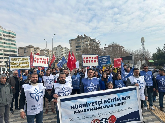 Kahramanmaraş (SHA)-Hürriyetçi Eğitim Sen Kahramanmaraş Şube Başkanı Fatih Soylu, kamu çalışanları ve emeklilerin yaşam standartlarının her geçen gün düşmesi, ekonomik olarak yetersiz maaş artışları ve artan yaşam maliyetleri karşısında tepkilerini dile getirmek üzere ulusal bir eylem gerçekleştirdiklerini duyurdu.