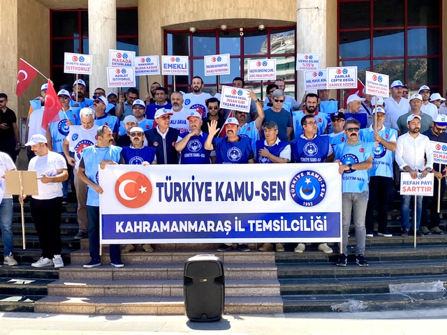 KAHRAMANMARAŞ – Türkiye Kamu-Sen Kahramanmaraş İl Temsilcisi Hasan Yurdagül, Necip Fazıl Kültür Merkezi önünde yaptığı basın açıklamasında, 8. Dönem Toplu Sözleşme Görüşmeleri kapsamında Kamu İşveren Heyeti’nin sunduğu zam teklifini sert sözlerle eleştirdi. Yurdagül, “Bu teklif, memurun ve emeklinin hiçbir beklentisini karşılamamaktadır. Reddediyoruz” dedi.
