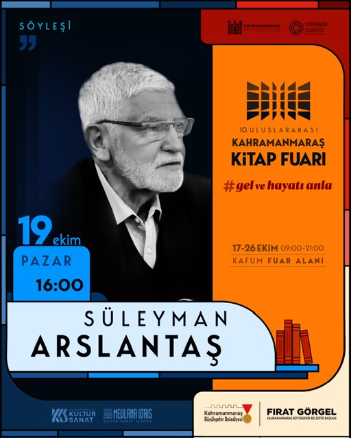 10. Uluslararası Kahramanmaraş Kitap Fuarı’nda 19 Ekim Pazar günü; Prof. Dr. Mehmet Akif Kireçci, Mehmet Ercan, İrem Oturaklıoğlu Kaya, Süleyman Arslantaş ve Ahmet Taşağıl, kitapseverlerle bir araya gelerek söyleşi gerçekleştirecek.