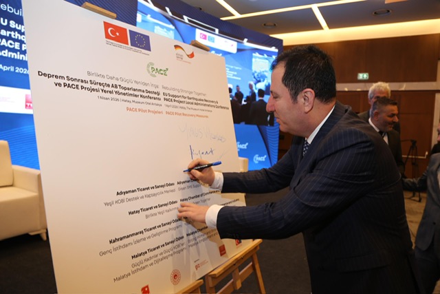 Projenin imza töreni, Hatay’da düzenlenen “Birlikte Daha Güçlü Yeniden İnşa: Deprem Sonrası Süreçte AB Toparlanma Desteği ve PACE Projesi Yerel Yönetimler Konferansı” kapsamında gerçekleştirildi. Programa ayrıca Adıyaman, Hatay ve Malatya ticaret ve sanayi odası başkanları da katılım sağladı.