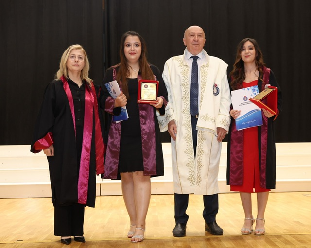 Dönem ikincileri Fatma Gül Kılınç ve Dr. İrem Balıkçı’yaplaket ve başarı belgelerini Rektör Prof. Dr. Alptekin Yasım verdi. Dönem üçüncüsü Dr. Selma Demir ise plaket ve başarı belgesini Kahramanmaraş İl Emniyet Müdürü Nurettin Gökduman’dan aldı.