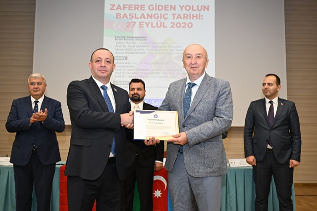 Diaspora Destek Vakfı Başkanı Ekrem Abdullayev ise, Karabağ zaferinin Türk dünyası için gurur kaynağı olduğunu belirterek, “İkinci Karabağ Savaşı’nda Türkiye’nin desteği ile galip geldik. KSÜ’ye ve emeği geçenlere teşekkür ederim.” diye konuştu.