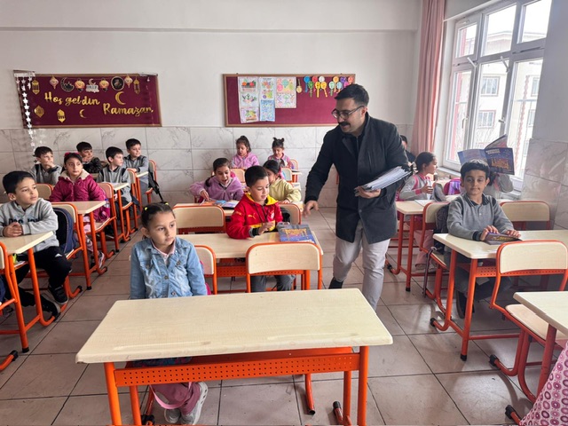 Öğrencilere “Bereket Zamanı” dergisi, “Ayşe, Ökkeş ve Gizli Dostları (İyilikte Yarışanlar)” hikâye kitabı ile “Ayşe ve Ökkeş ile Bilgiyi Renklendiriyoruz” Ramazan’a özel boyama kitapları dağıtıldı.