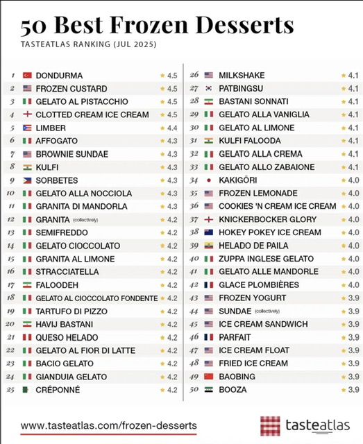Dünyanın en popüler gastronomi platformlarından biri olan TasteAtlas, geleneksel Maraş Dondurması’nı “Dünyanın En İyi Soğuk Tatlısı” olarak ilan etti. Yüzlerce yerel ve geleneksel lezzetin değerlendirildiği küresel listede zirveye oturan Maraş Dondurması; kendine özgü kıvamı, dayanıklılığı, kesilme şekli ve eşsiz sunumuyla dikkat çekti.